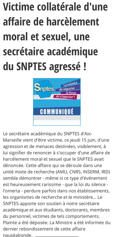 Pire encore (accrochez-vous) : le syndicaliste qui tentait d’aider les employés de l’IHU dirigé par Raoult et enquêtait sur une affaire de harcèlement sexuel étouffée, est agressé sexuellement dans la rue par des individus qui lui intiment l’ordre de cesser ses enquêtes ! 🔽