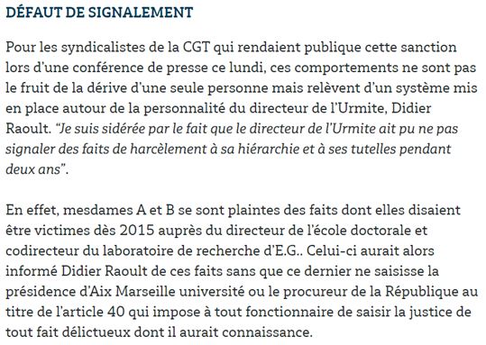 Raoult n’a pas alerté le procureur (la loi pourtant l’y oblige) et a fait revenir l’agresseur à l’IHU comme gérant de start-up alors qu’il avait été viré du CNRS ! 🔽