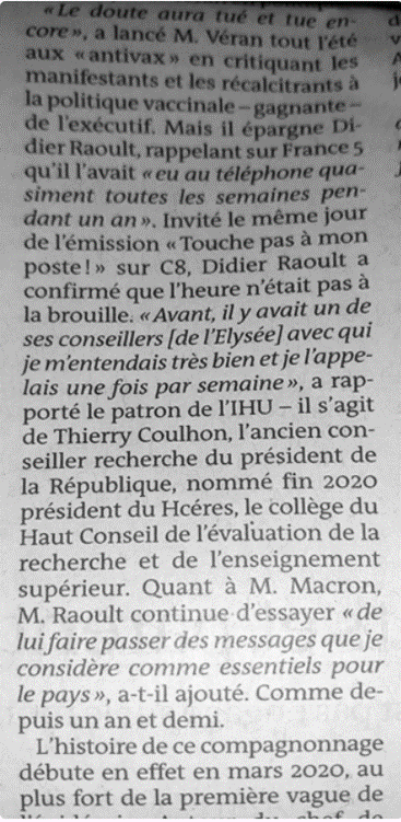 Et je t’ai gardé le meilleur pour la fin, public… Là c’est quelque chose qui n’est encore jamais sorti dans la presse, passé inaperçu… Oui, entre Raoult et Macron, en personne.
