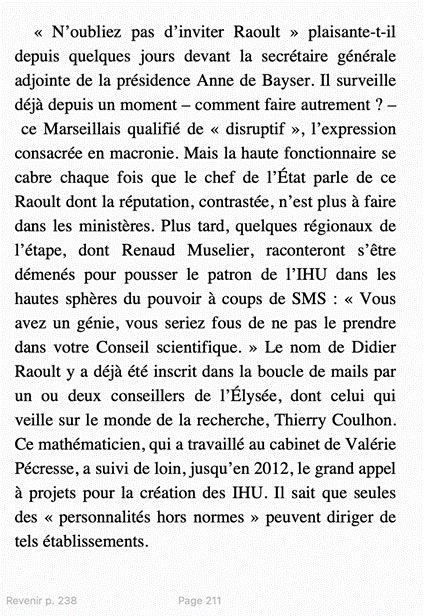 Dans ce passage du livre de @ArianeChemin et @MFEtchegoin (parmi les meilleures journalistes d’investigation : Mme chemin ayant découvert l’affaire Benalla) on découvre cette conversation entre Macron et Veran à propos de Raoult. Or se cache là un véritable scandale d’Etat. 🔽