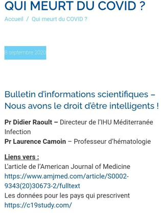 Ou quand Raoult utilise le site internet officiel de l’IHU pour citer et promouvoir le site internet complotiste anonyme et mensonger « c19study« , sans aucune réaction de l’université, des tutelles, des membres du CA de l’IHU, des ministres… : 🔽