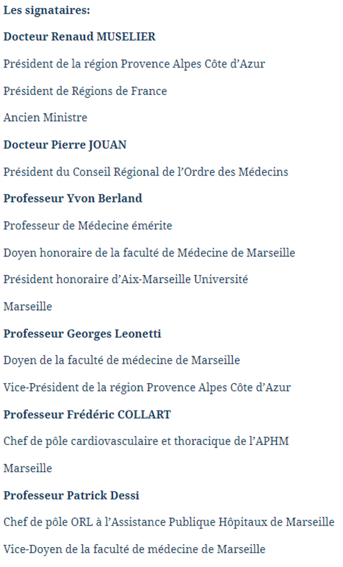 1ers signataires de cette tribune de soutien à Raoult :