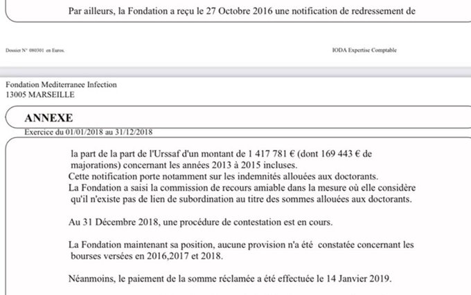 Mais aussi, comptes de l’IHU dirigé par Raoult publiés en retard, redressement URSSAF… : 🔽
